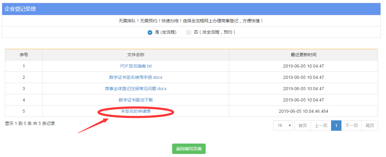 5、然后下載需要簽名的文件,使用U盾或者CA數(shù)字證書進行簽名提交,等待審核通過領取營業(yè)執(zhí)照。